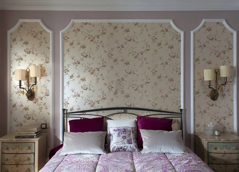 Изголовье кровати и стена над тумбочками украшена панно из обоевИсточник womanadvice.ru