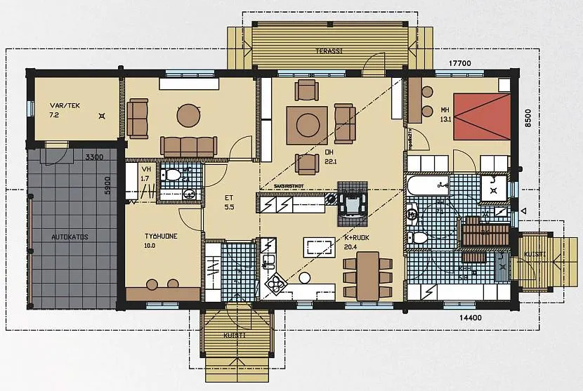 Пример проекта обустройства внутренних помещений дачи с зонированиемИсточник finndom.com.ua