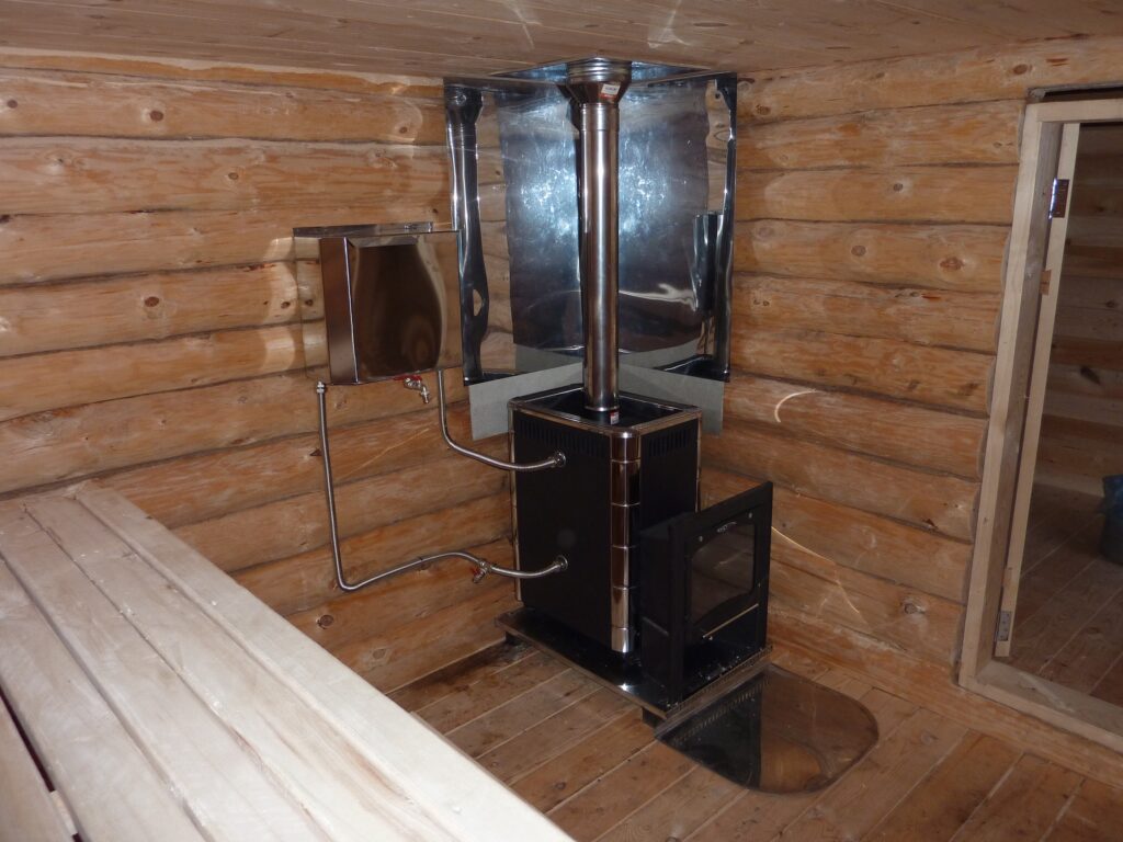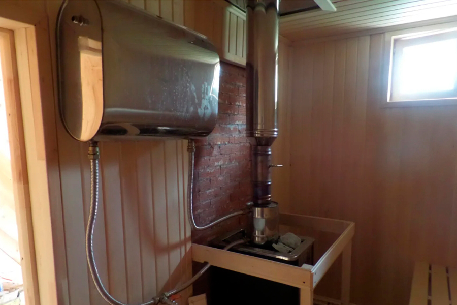 - внутренние, или встроенные. Располагаются над топкой или сбоку от нее, рядом с каменкой. Требуют большого расхода топлива из-за необходимости одновременного нагрева камней и воды;