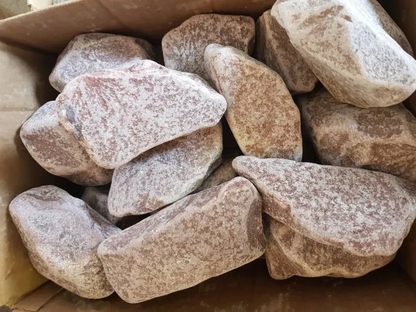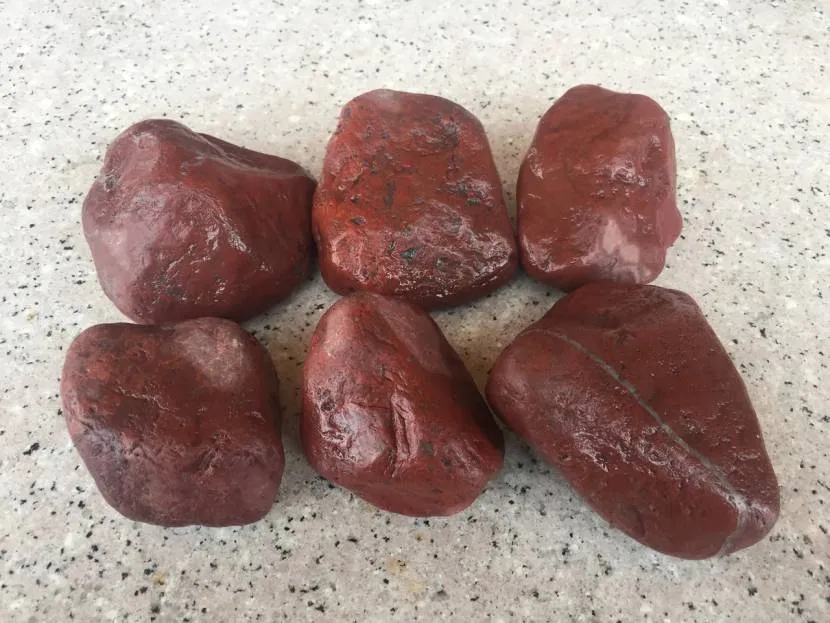 Раздумывая над тем, какие камни для печки в бане лучше, стоит обратить внимание и на малиновый кварцит, яркого пурпурно-коричневого цвета. Является одной из прочных пород, устойчивой к растрескиванию – не боится даже холодной воды, которую смело можно лить на каменку
