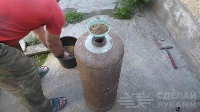 Сливаем воду с песком. Несколько раз промываем баллон, чтобы избавиться от остатков песка.