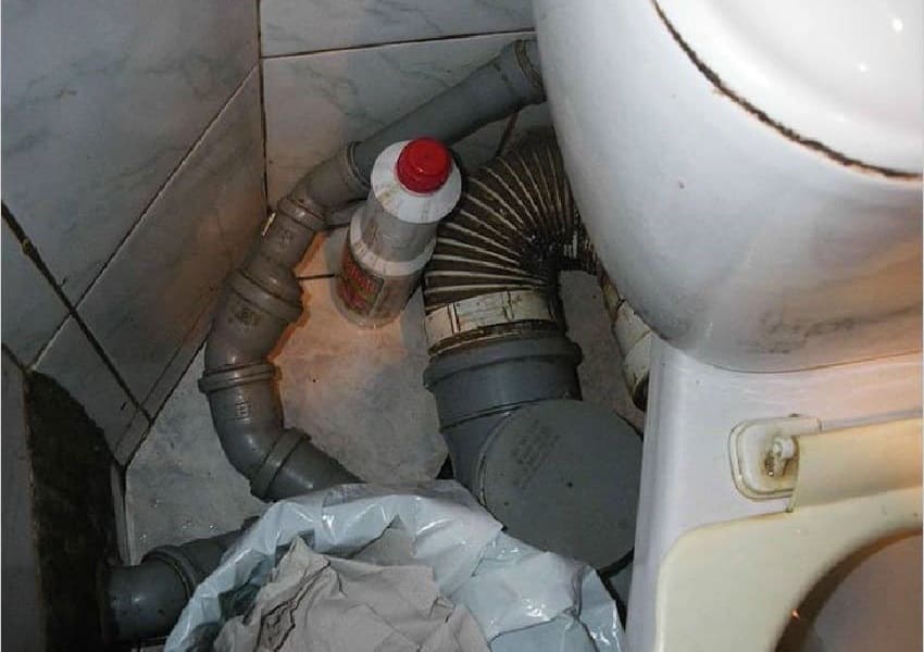 - Нет фанового стояка. Такая труба служит вентиляцией для канализационной системы. Она позволяет собравшимся газам уходить. При отсутствии фанового стояка внутри труб образуются пробки из воздуха. Из-за этого вода останавливается или просто теряет скорость. Есть и сопутствующий признак этой проблемы: газы все же находят выход из канализации. В таком случае из унитаза, ванны и раковин слышен неприятный запах.
