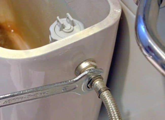 - В санузле отключают водоподачу, закрутив вентиль водопровода.