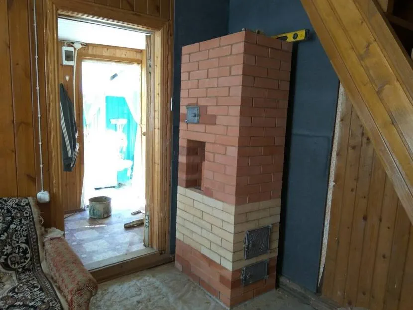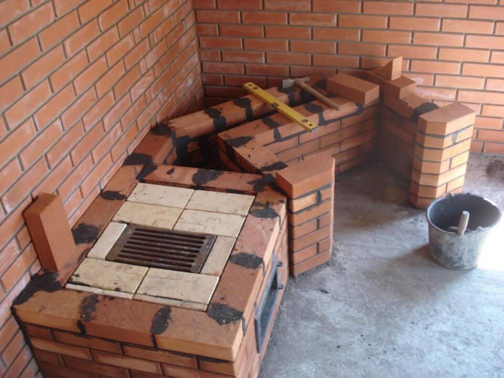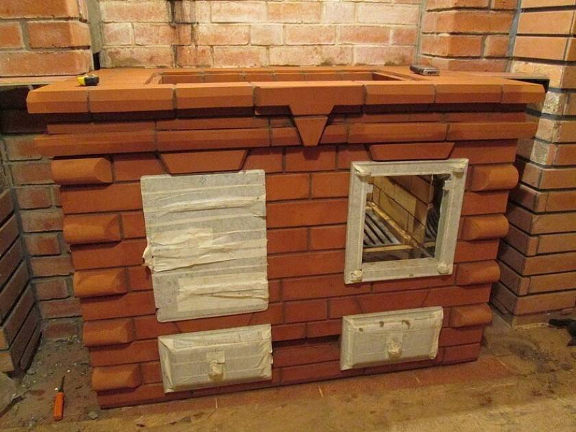 - Обкладывается уже установленная дверца и ставится плита. Рекомендуется для приготовления пищи покупать именно чугунный вариант.