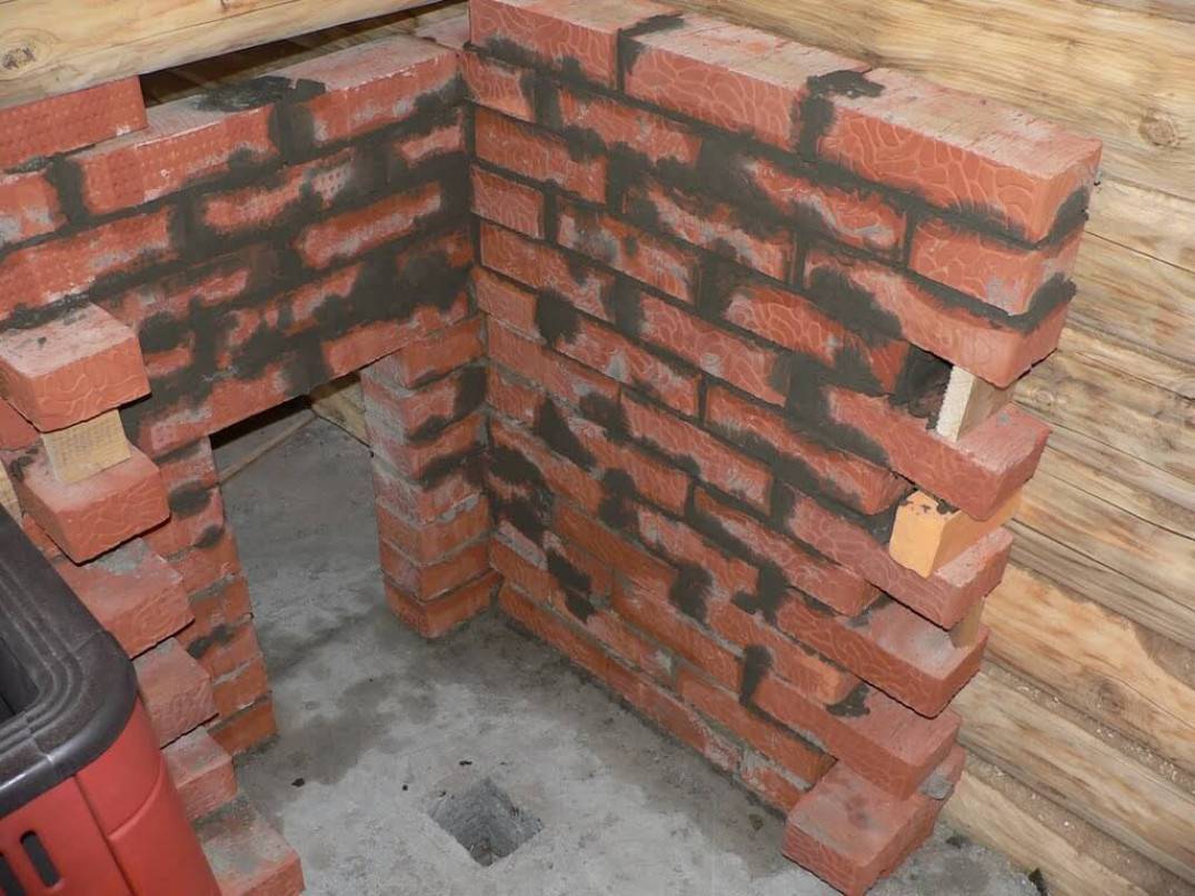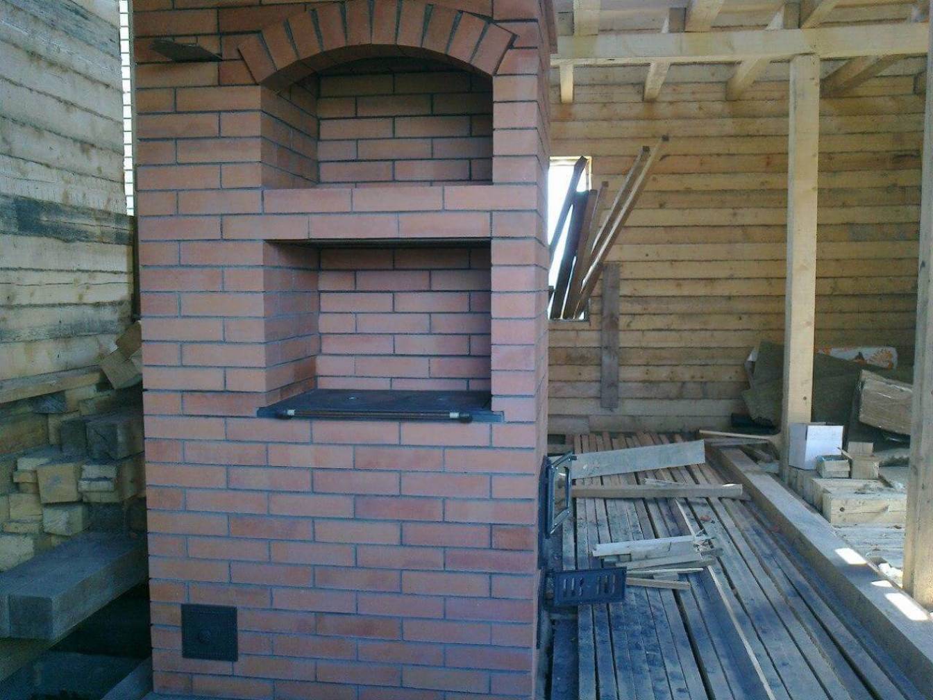 - Следующий ряд включает использование шамотного огнеупорного кирпича и установку дверцы для топки, обернутой в асбестовый шнур.