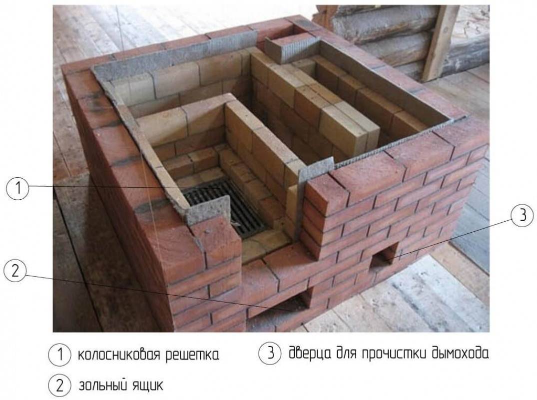 Маленькая печь из кирпича только для отопления состоит из следующих частей: