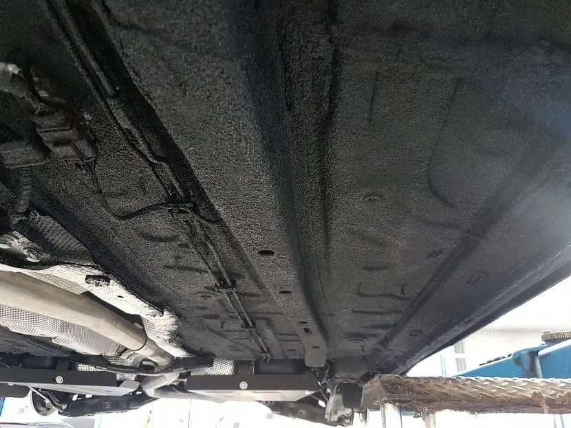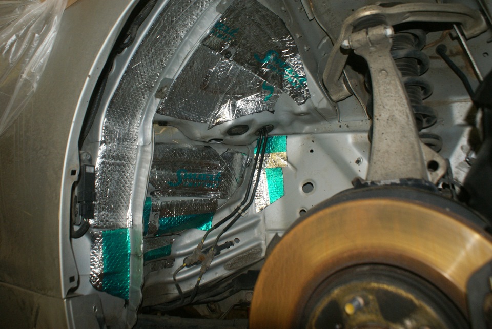 Жидкая шумоизоляция кузова в большей части наносится на днище машины и колесные арки, то есть на те места, которые невозможно закрыть стандартными листовыми материалами.