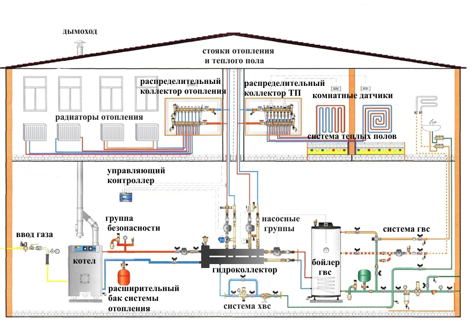 Рис. 12. Схема системы отопления и горячего водоснабжения дома