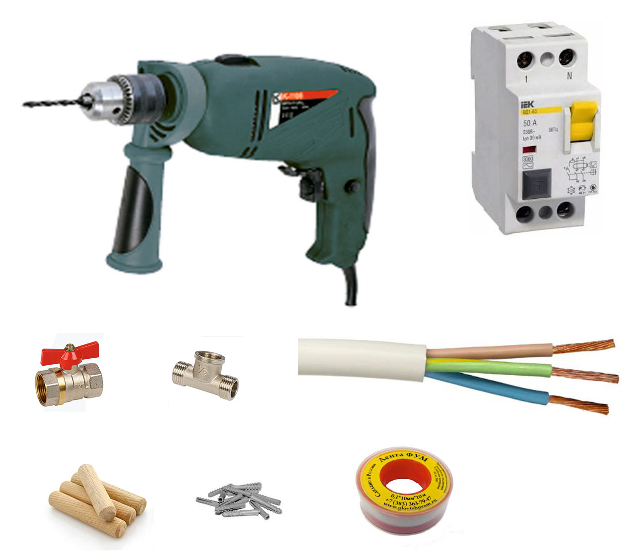 - Дрель со сверлами – нужно просверлить в стенах отверстия для крепления;