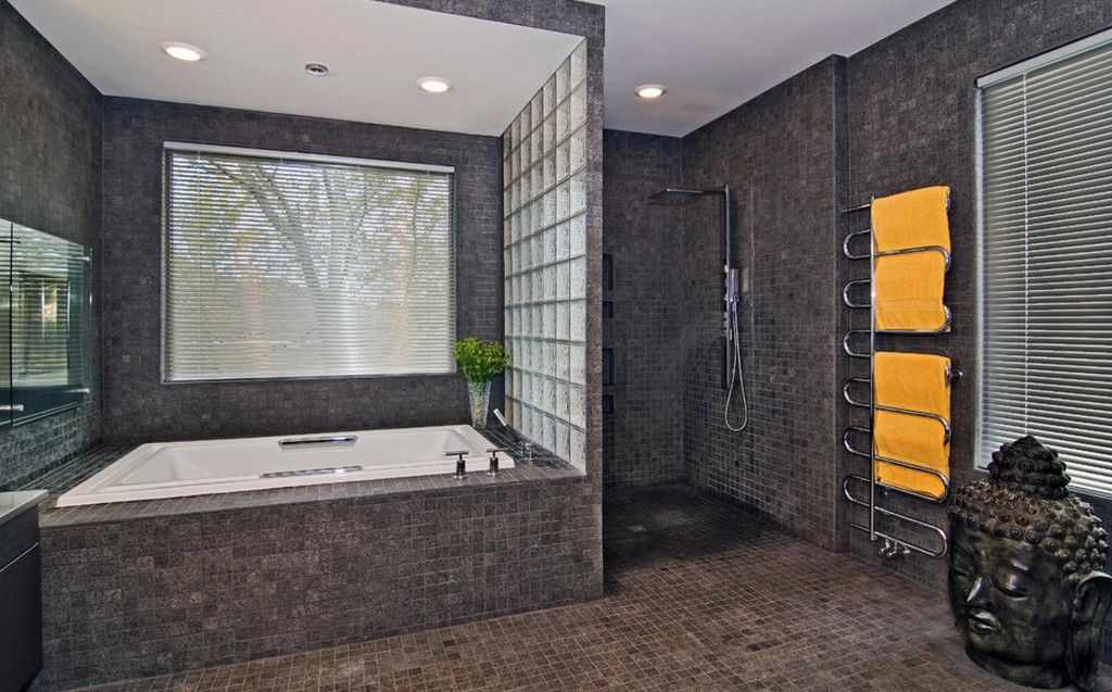 Черная сталь. Не такая износостойкая как первый вариант, но полотенцесушитель в интерьере ванной комнаты из этого материала может исправно работать до 10 лет;
