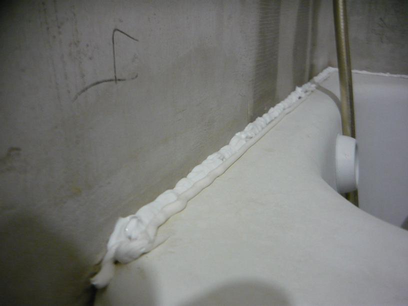 - нанесите такой же слой монтажной пены уже на прокладку, прижмите к ней водорозетку и зафиксируйте в прижатом состоянии. Излишки пены срезаются через час.