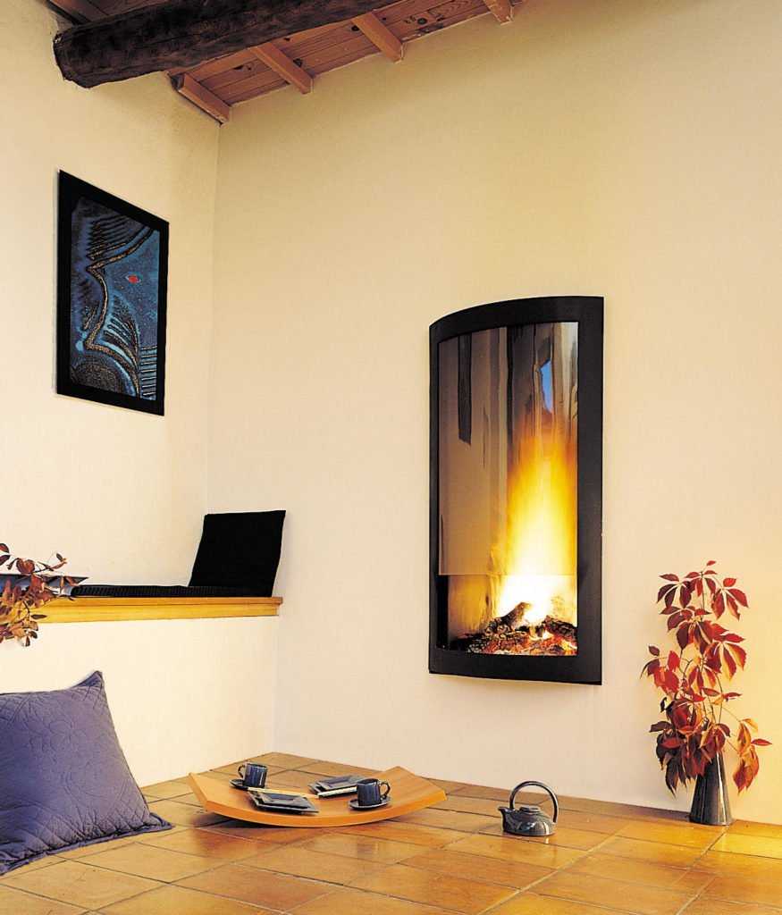 Угловой вариант хорош тем, что занимает совсем мало места. Если для фронтальной модели бывает сложно найти свободную территорию, то угловые камины могут располагаться там, где пространство пропадает впустую.