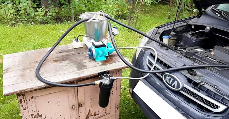 Бывает так, что патрубки, шланги и радиаторы забиты напрочь. Тогда советуем использовать воздушный компрессор для продувки. Есть другой вариант: подключить к системе садовый водяной насос и запустить циркуляцию до полной промывки. После завершения следует залить новый тосол.
