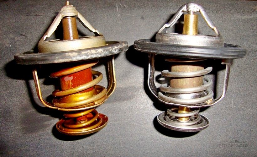 В различных марках машин термостаты настраивают на разный температурный режим открывания. Ее обычно указывают на самом устройстве. Бывают бескорпусные термостаты. Их ставят прямо в блок двигателя.