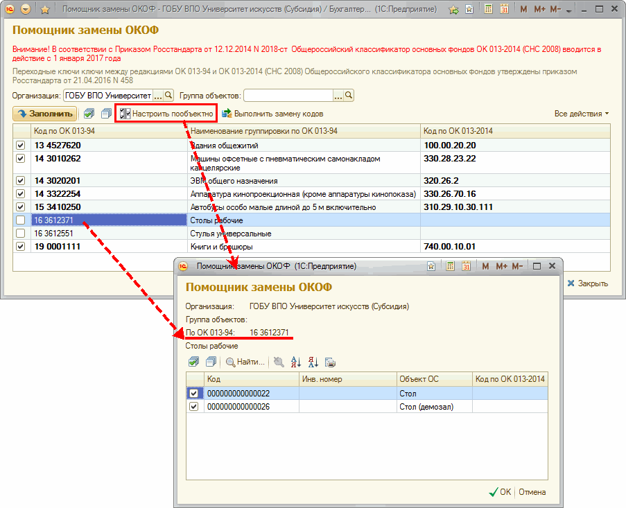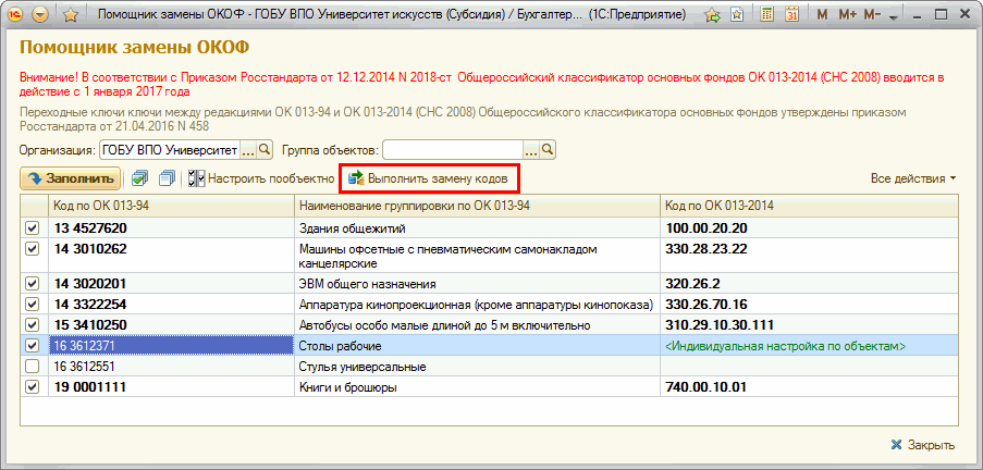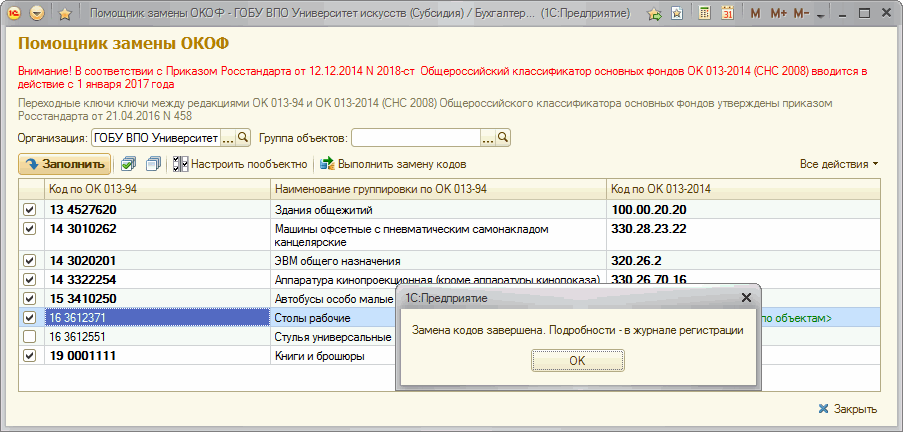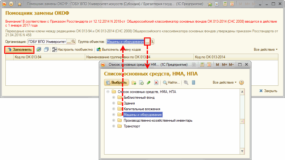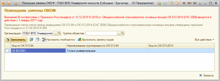 Замена кодов по ОКОФ у основных средств, принятых на учет до 01.01.2017