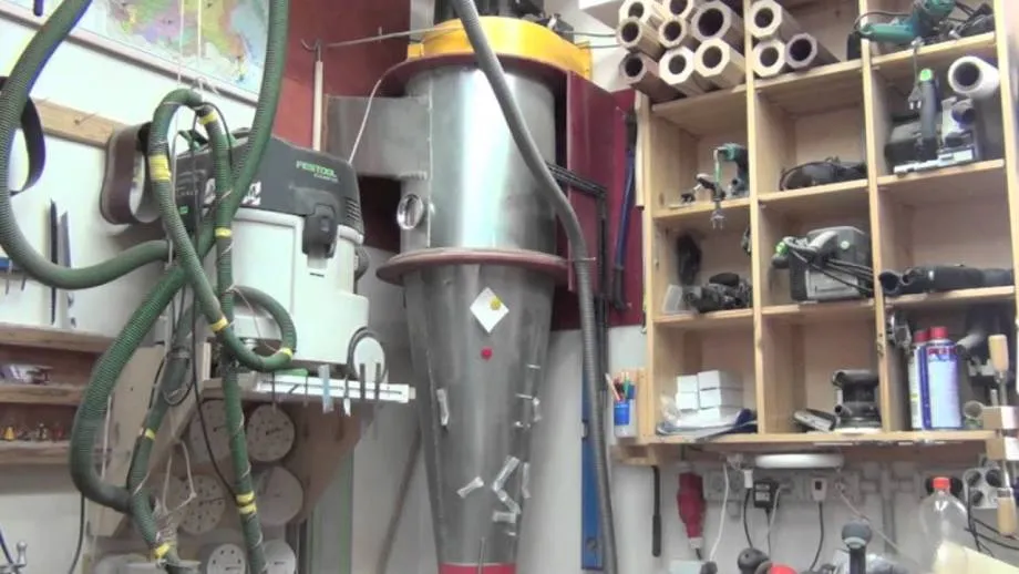 Рекомендую следующее видео, в котором автор самостоятельно изготавливает промышленный стружкоотсос для системы вентиляции в мастерской: