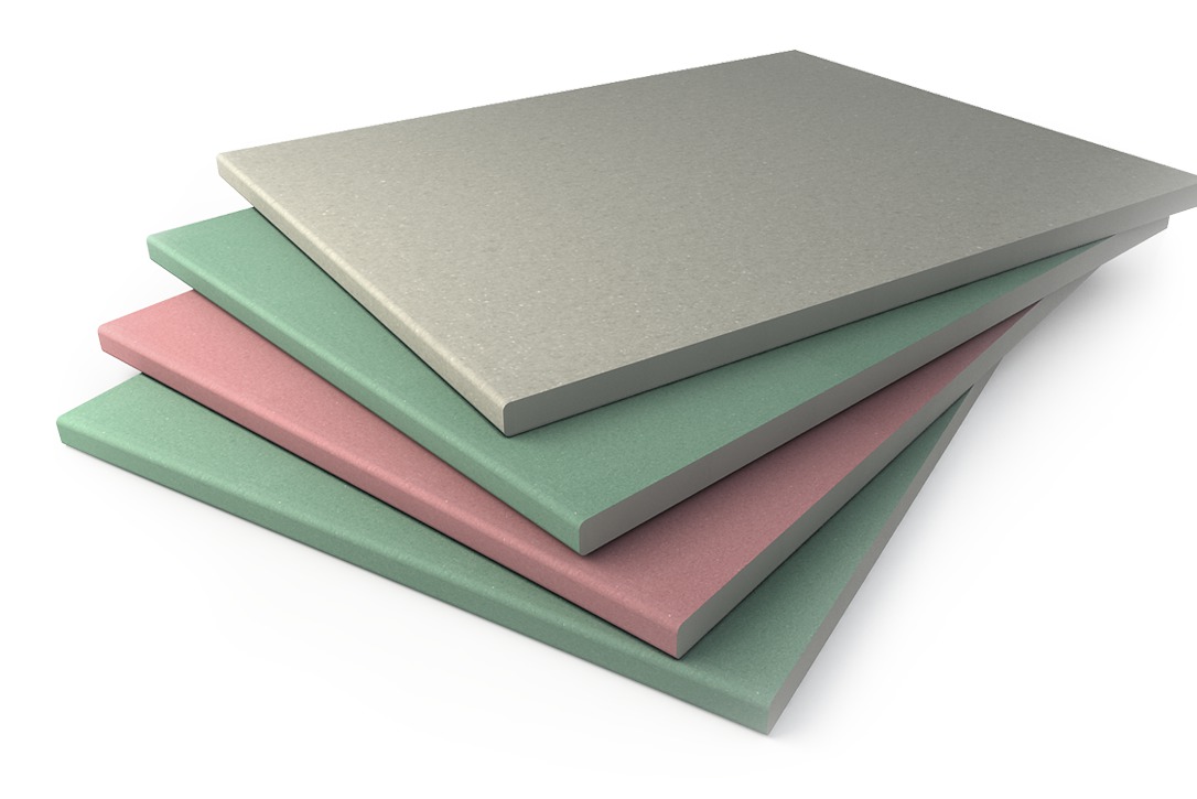 Выпускают гипсокартон для разных условий эксплуатации, для легкого распознавания применяют картон разного цвета (серого, зеленого, розового):