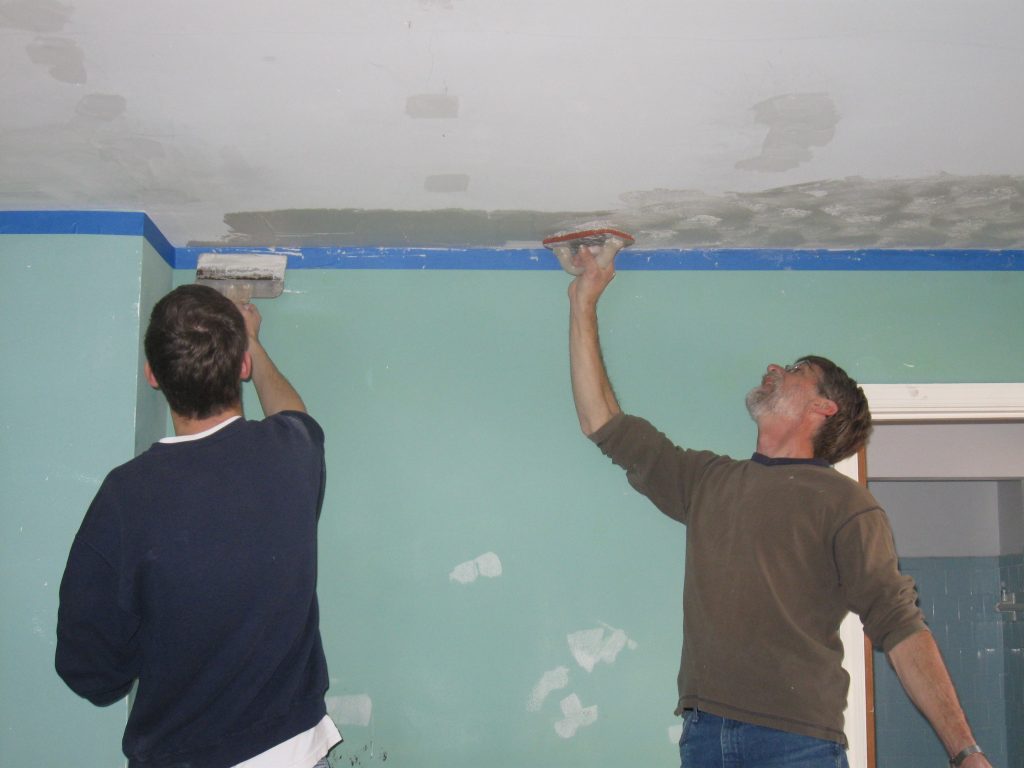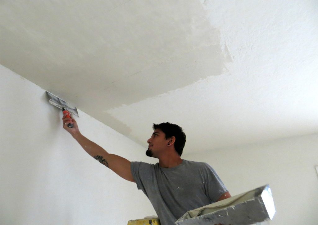 При необходимости комбинированной отделки потолка и стен в одной комнате, необходимо начинать работы с горизонтальной плоскости. В таких случаях, вся пыль оседает на стенах, которые впоследствии пылесосятся и подлежат шпаклёвке.
