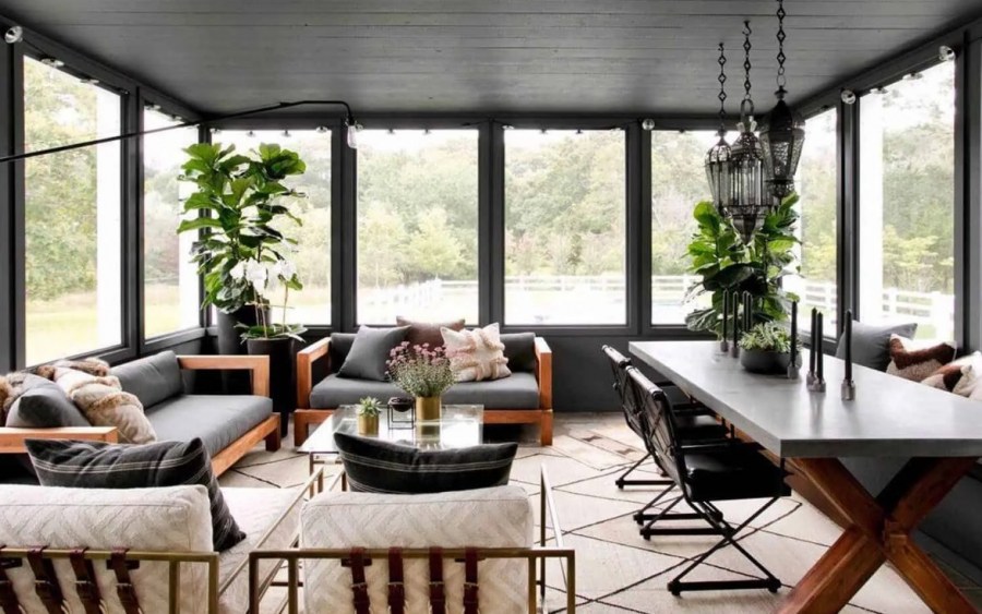 - Закрытая терраса (стенами и крышей, постоянными или нет), чтобы наслаждаться ею в любую погоду и в любое время года.