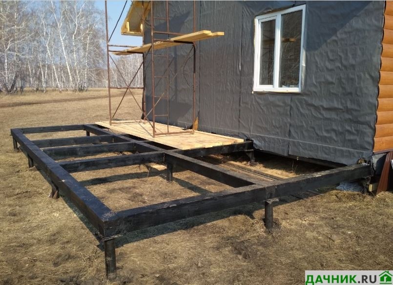 Ленточный фундамент – ответ на вопрос как пристроить веранду к дому, если обе конструкции идут тяжелыми и закрытыми. Тематическая подложка предохраняет основной фундамент от промерзания и корневищ. Но на ее строительство уходит больше средств, сил и времени: