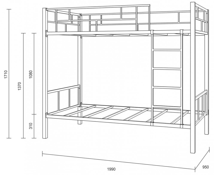 Схема простой двухъярусной кровати из дерева с вертикальной лестницей