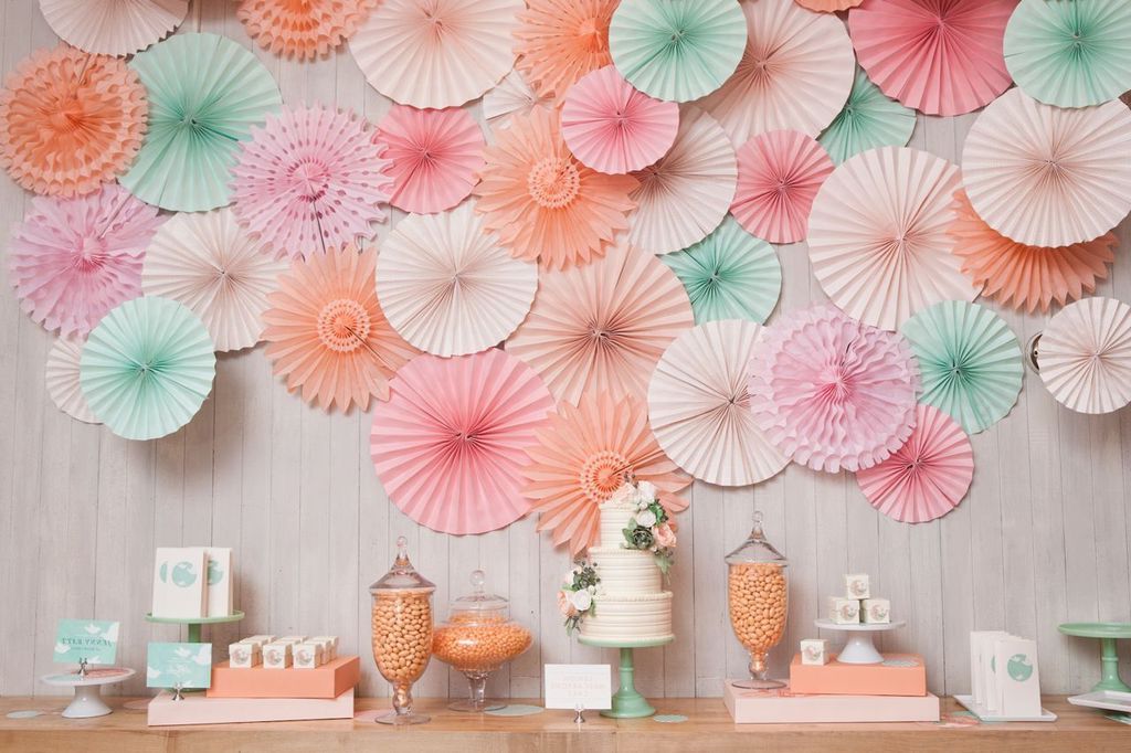 Чтобы быстро украсить комнату для вечеринки, вы можете очень быстро наделать целую кучу таких цветов из салфеток своими руками. Нужно бумажную салфетку сложить в 4 слоя и скрепить середину с помощью степлера. Ножницами закруглить концы квадрата и прижать к центру слоями.