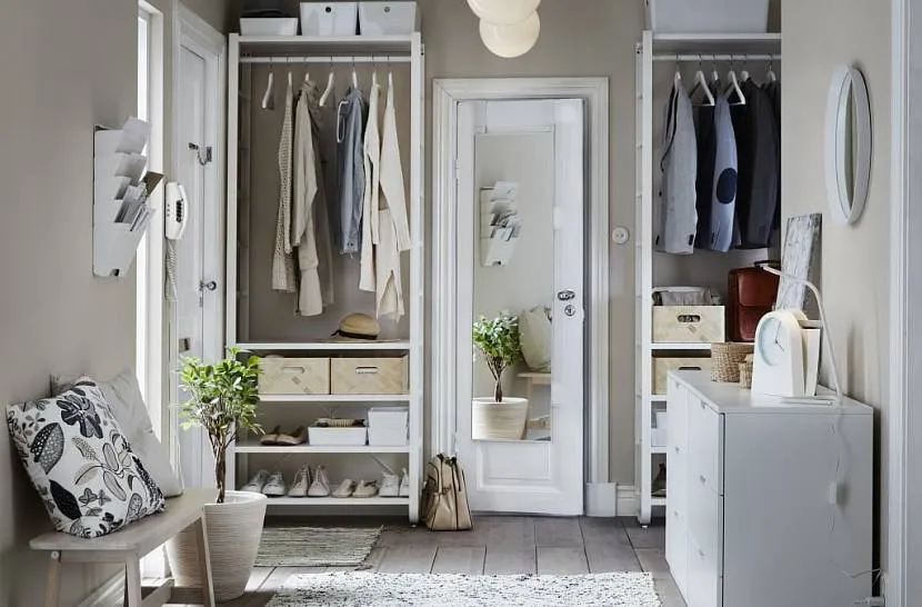 Открытая гардеробная в небольшой прихожей
