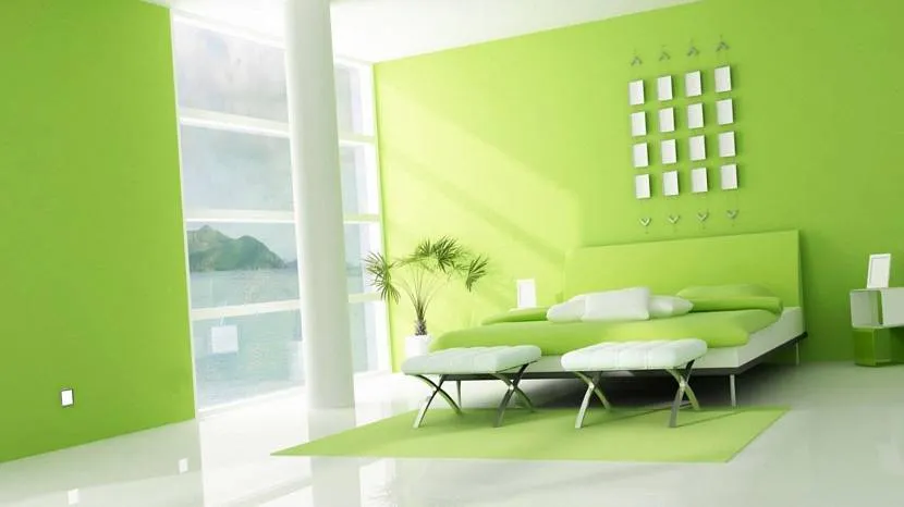 Однотонные салатовые стены в спальнеИсточник pitaka.ru