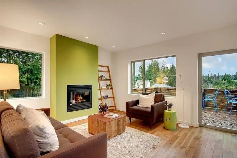 Что имеется в виду? Рассмотрим на конкретном примере. Зеленый неплохо сочетается с оранжевым цветом, а вот в напарники персиковому при покраске стен двумя цветами он уже не подойдет. В этой комбинации его лучше заменить оливковым тоном.