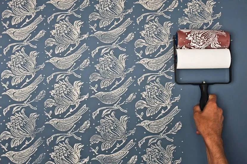 Чтобы оформить стену с индивидуальным повторяющимся рисунком, понадобится специальный валик. Его можно приобрести в строительном магазине или сделать вручную с помощью машинки для подстригания (понадобится художественный навык). Просто обмакните инструмент в красочное покрытие и проведите по стене. Следите за тем, чтобы слой был достаточным, иначе постепенно рисунок будет бледнеть.