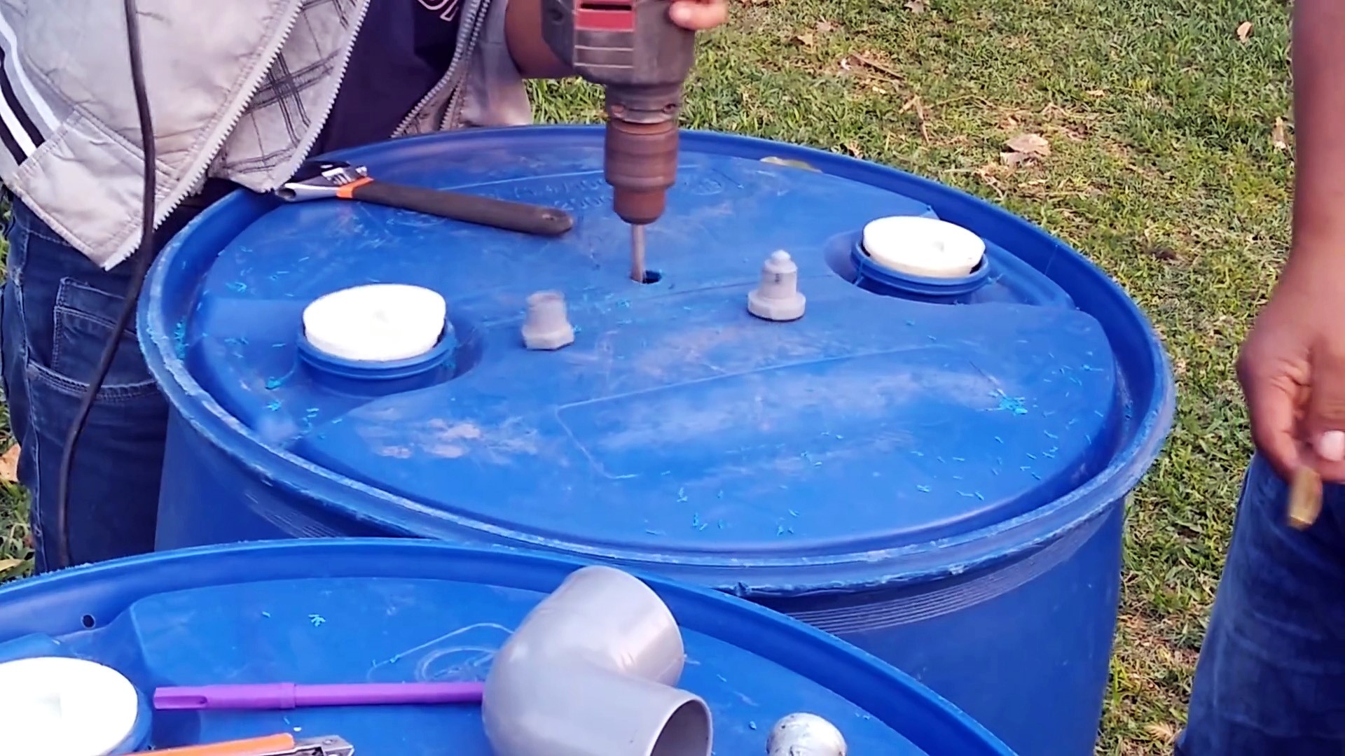 В качестве эксперимента можно попробовать сделать установку из обычной пластиковой бочки. Они выпускаются объемом от 100 до 200 литров. Бочка будет служить реактором. Сделайте в ней два отверстия для входа и выхода патрубков. Входное отверстие делается ближе к днищу, а выходное — сверху. Диаметр отверстий зависит от диаметра используемых патрубков. Пластиковые трубы можно купить в строительном магазине. Вставляем их в отверстия и надежно изолируем. Для входа подойдет труба с изгибом (с соединителем), а для выхода — короткая прямая трубка.