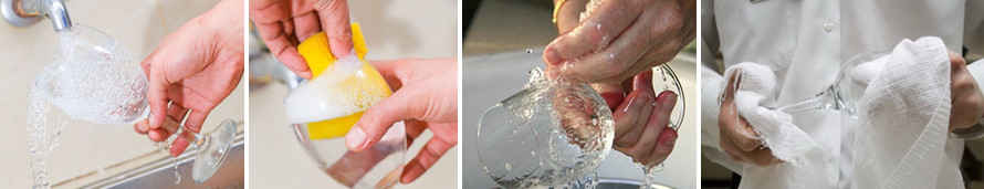 Дорогие бокалы для вина в посудомоечной машине мыть не рекомендуется. Лучше это делать вручную, используя отдельную губку и максимально деликатное моющее средство, после которого не остается «химической пленки» — разводов. Мыть стеклянные и хрустальные бокалы следует прохладной водой – слишком горячая может стать причиной помутнения сосудов. И не стоит держать бокал при мытье за ножку – она может треснуть.
