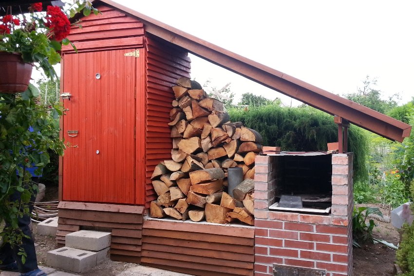- в очаге можно оборудовать участок для расположения углей и опилок или просто организовать костровое место и коптить при помощи дров дуба, ореха, фруктовых деревьев и веточек можжевельника;