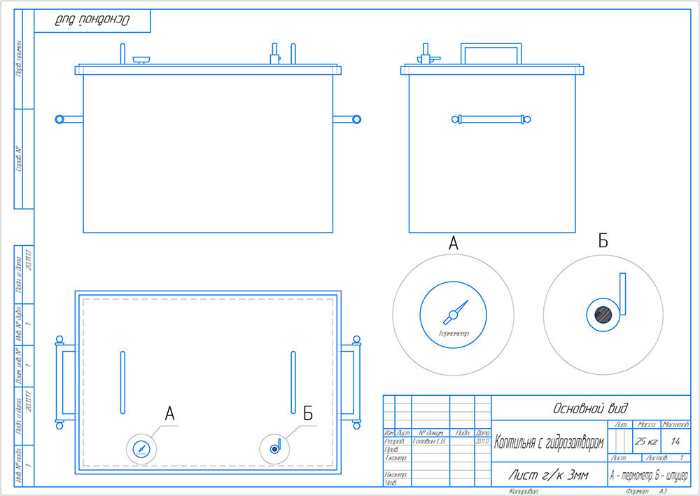 Важно, чтобы камера копчения была герметичной. Перед началом работы всегда создаются чертежи — это существенно снизит расход времени на сборку