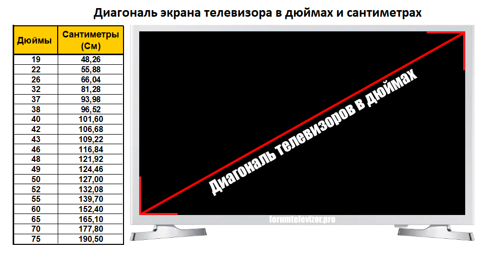 Таблица диагоналей телевизоров и мониторов в дюймах и сантиметрах