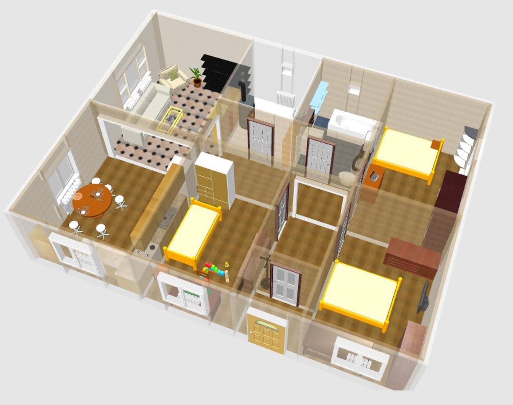 Все намного боле упрощается, если в реализацию идет проект одноэтажного дома 10х10 с тремя спальнями. Такие цифры говорят о том, что для планирования есть 100 квадратных метров, а это уже нормальная возможность организовать любое помещение практически без ущерба для его площади.