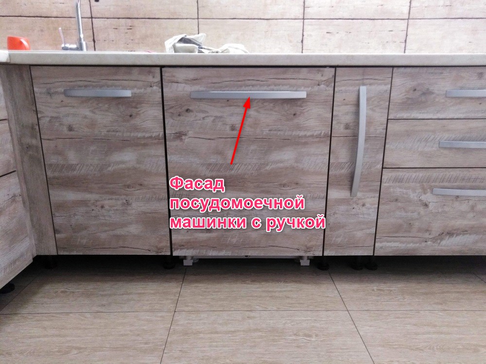 Всё фасад с ручкой зафиксирован на панели посудомоечной машины.