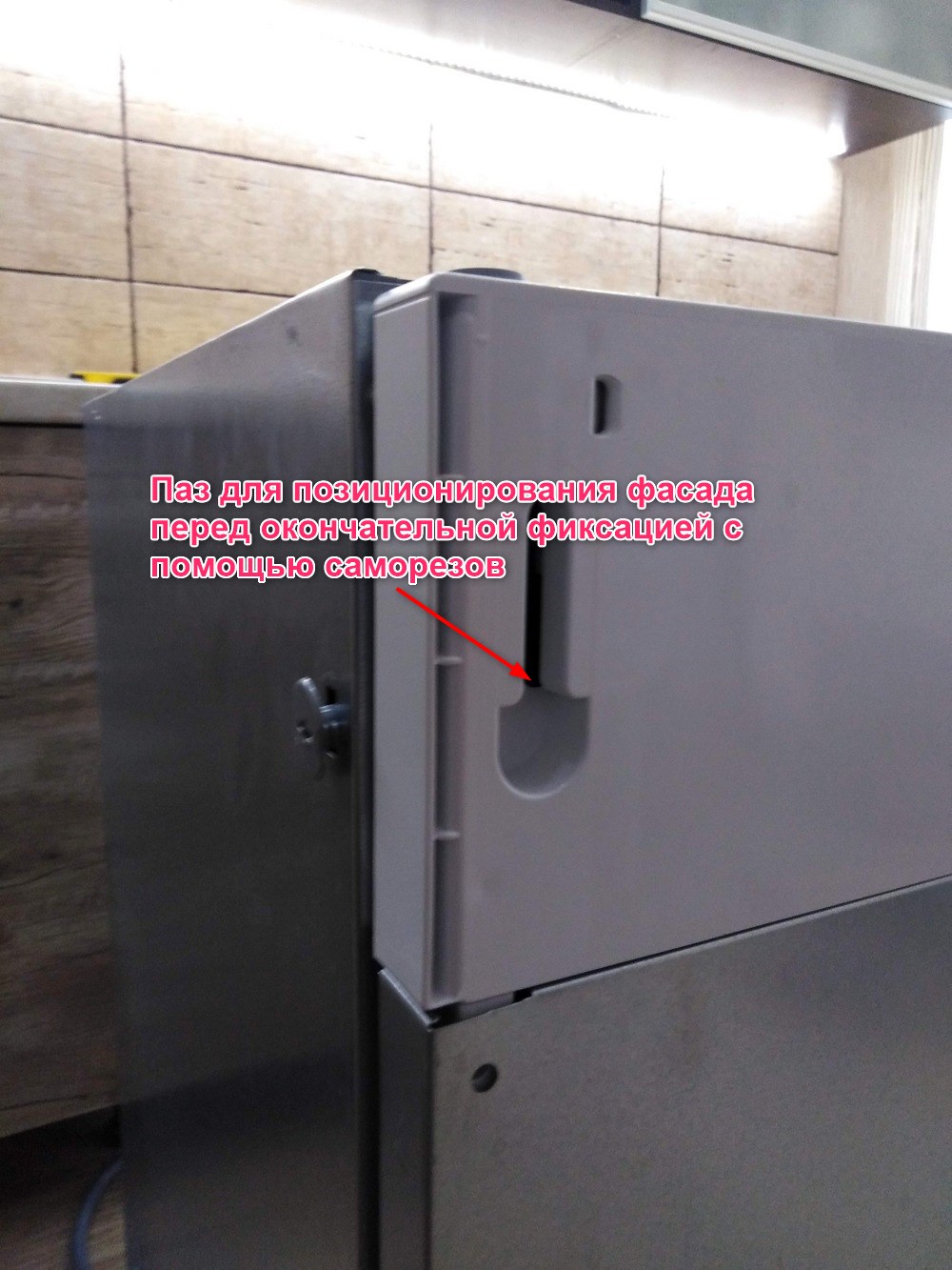 Фиксируем фасад на панели посудомоечной машинки