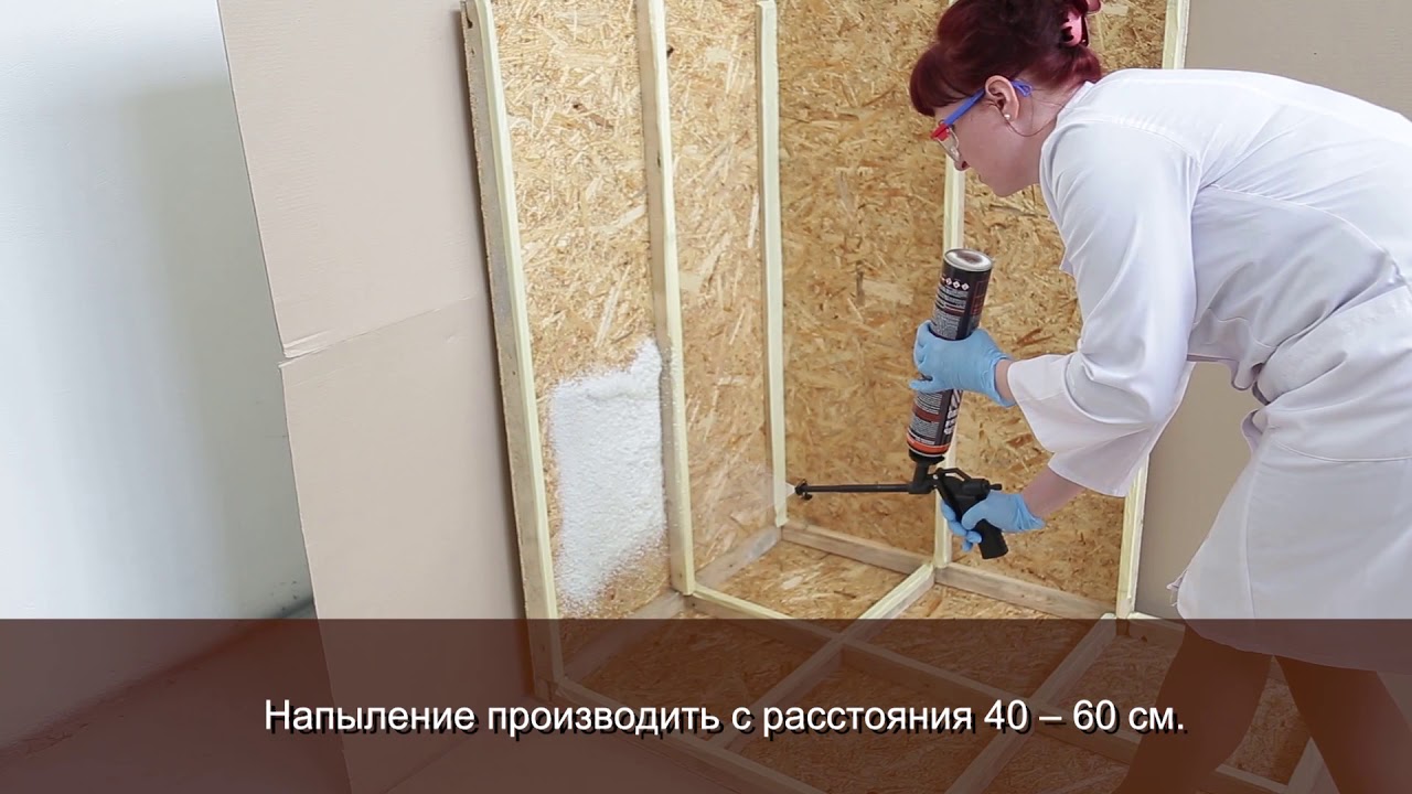- 30-40 кг/м3 — материалы с «пограничной» ячеистой структурой. Используют для напыления внутренних полостей каркасных стен и конструкций (кровли, полов на лагах, чердачных перекрытий).