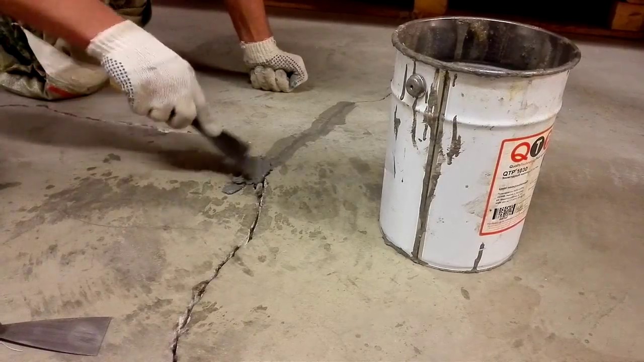 - Первоначально присутствующие на бетонном полу выбоины и трещины необходимо очистить от пыли и грязи. Плохо держащиеся куски основания нужно удалить. Затем всю поверхность требуется пропылесосить или вымыть.