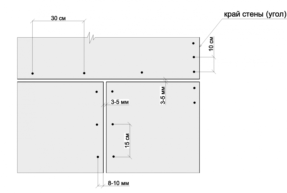 Важно учитывать, что клеевой состав на основе шпаклевки действителен только в течение 30 минут, потом он загустеет и станет непригодным к использованию. Стыки между листами также промазывают шпаклевкой и закрывают армирующей лентой шириной 50 мм