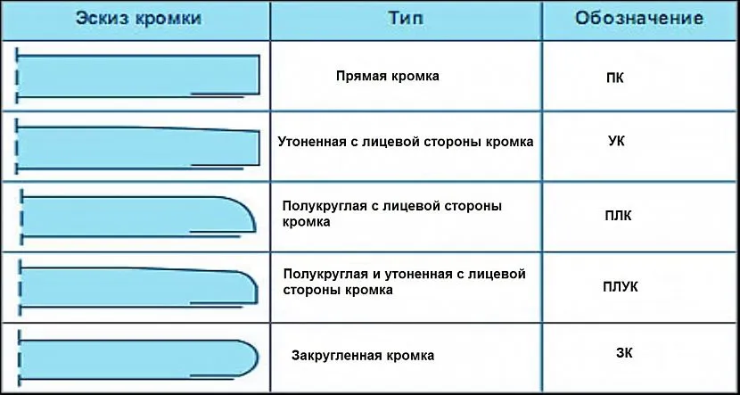 Ещё один важный момент при выборе ГКЛ заключается в форме его кромки, которые, кстати, тоже имеют свои обозначения: