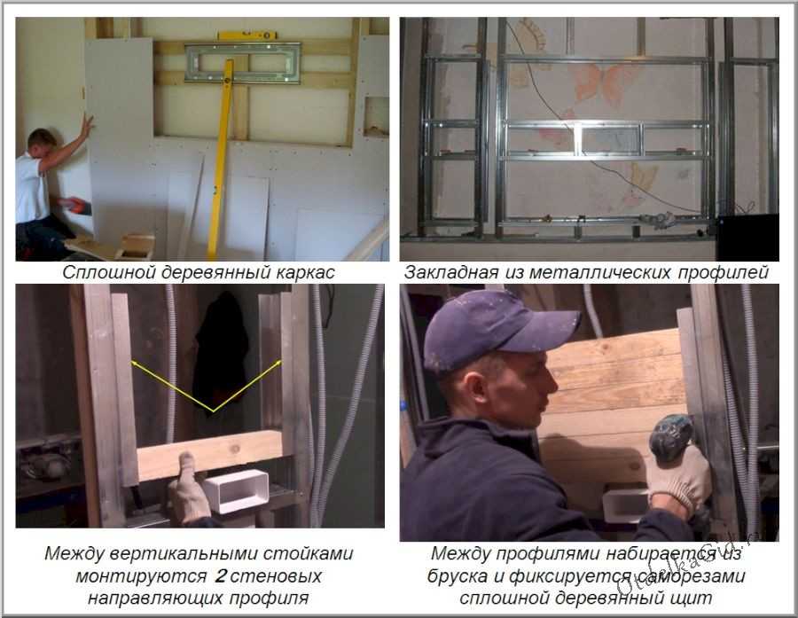 Минус такого решения – его невозможно сделать после обшивки стены ГКЛ. Комбинированная конструкция – это случай, когда закладная не соответствует размерам предмета.