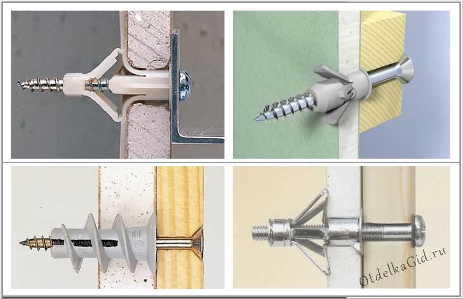 Разновидности «Молли», «бабочка» и Хартмут предназначены только для пустотелых конструкций. Это нужно, чтобы просунуть опорную часть в отверстие. Должно быть достаточно места за гипсокартонной обшивкой, чтобы разместилась крепежная часть дюбеля.