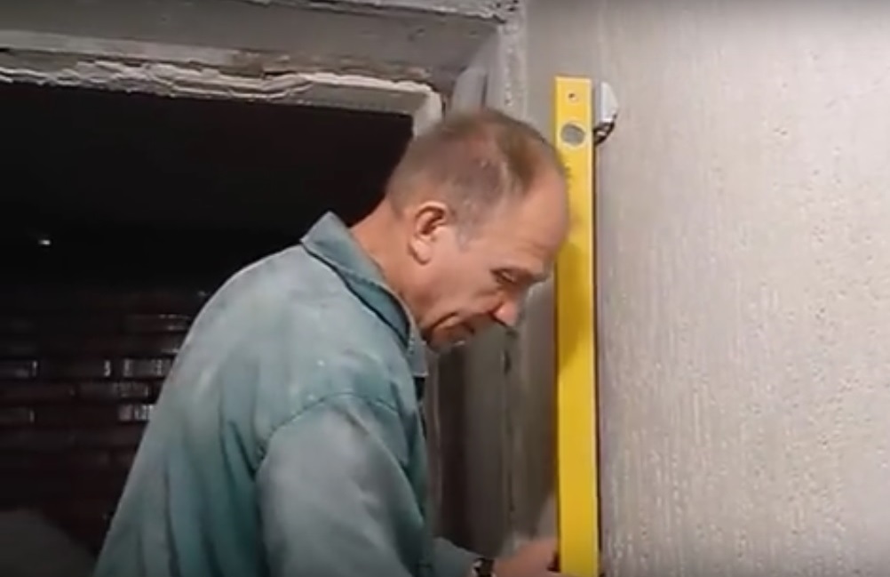 - На откосах получившееся покрытие можно проверить на ровность с помощью угольника и уровня. Если найдутся какие-либо отклонения, то процедуру придется повторить, но в этот раз использовать нужно уменьшенное количество раствора.