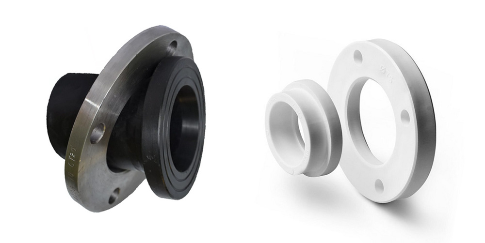 - стальной фланец с пластиковым патрубком, на конце которого есть бортик, куда упирается первый;