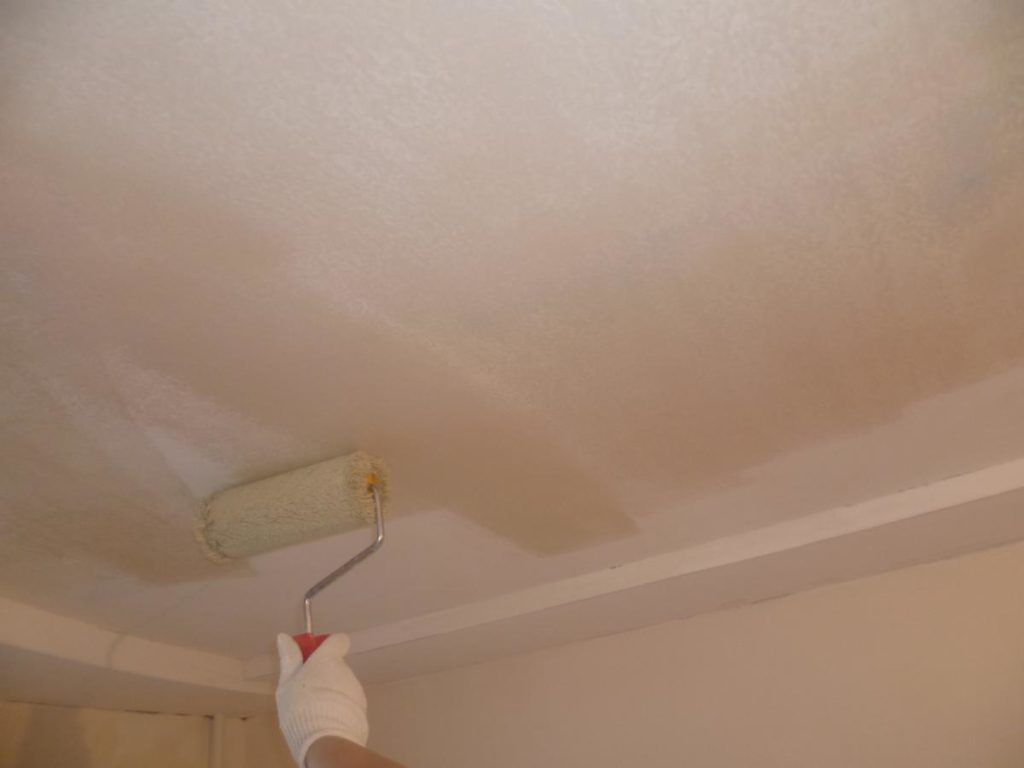 Работы по нанесению финишной шпаклевки на потолке начинаются с уборки поверхности веником и нанесения на нее грунтовки. Особенно тщательно промазываются швы. Далее поверхности дают высохнуть, что занимает до двух часов при температуре 20°С. После приготовления смеси работы проводятся в следующем порядке: